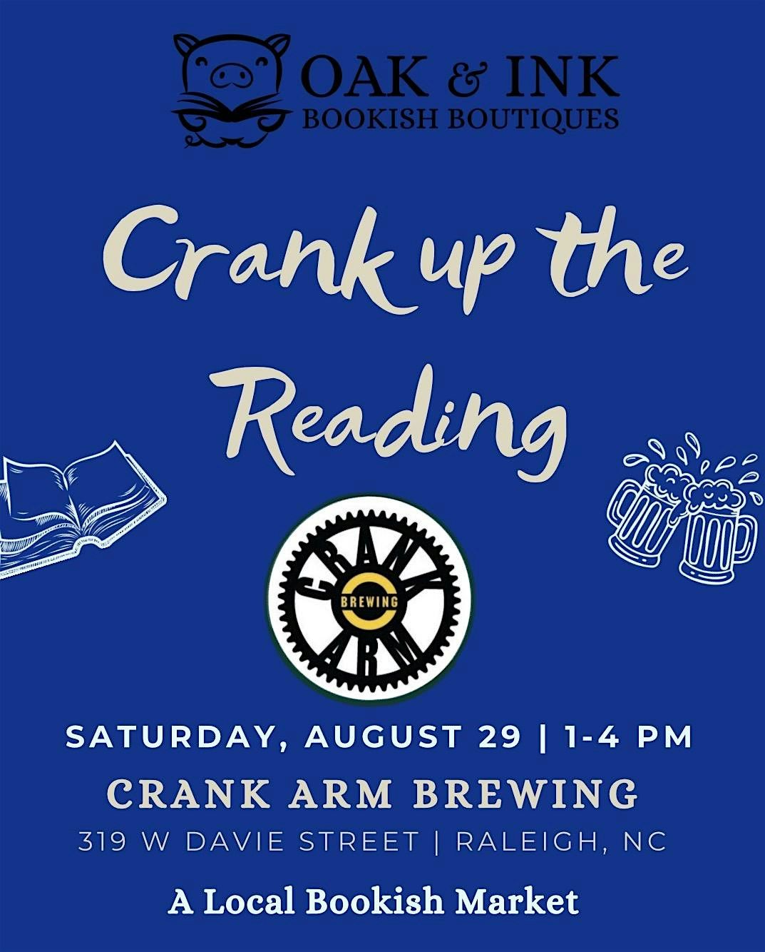 Sip & shop with a few local authors and bookish vendors on August 29th at Crank Arm Brewing downtown Raleigh. Grab your next favorite read!About this Event