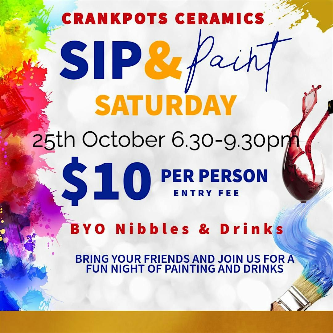 Welcome to Crankpots Sip N Paint October 25th 2025 at Crankpots Ceramic Studio! Get ready to unleash your creativity on October 25, 2025 at 6:30 PM (Mountain Time). Grab your friends or your date and join us for a fun-filled evening of painting and sipping in a relaxed atmosphere. No experience necessary, just bring your enthusiasm and we'll provide all the materials you need. Let your inner artist shine and take home your masterpiece at the end of the night. Choose from over 1000 items to panging ranging from $20 - $80. Don't miss out on this opportunity to unwind and get creative with friends or meet new people. See you there!