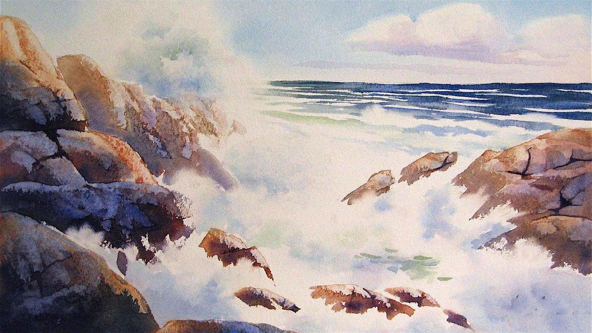 $55 or $70 with all supplies, including an 11x14 mat for your finished paintingWatercolor Waves Crashing on Rocks – Texture, Power & Coastal Drama 🌊🪨Experience the raw beauty of the coastline in this watercolor workshop focused on waves crashing against rugged rocks. In this class, you’ll learn how to capture the energy of moving water alongside the solid texture of weathered stone—creating a painting full of contrast, depth, and movement.
