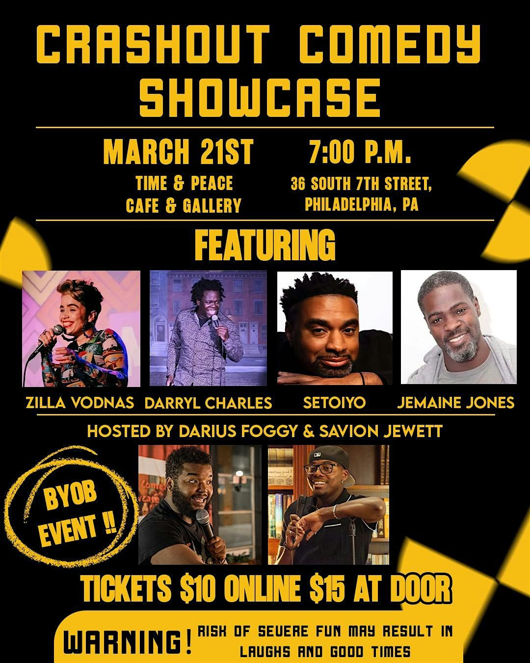 Come join us for a night of laughter at Crash Out Comedy Showcase!!!Location: Time & Peace Cafe and GalleryDoors open at 6:30pm