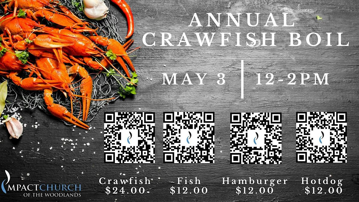 Annual Crawfish Boil — Sunday, May 3, 2026 at 12 PM