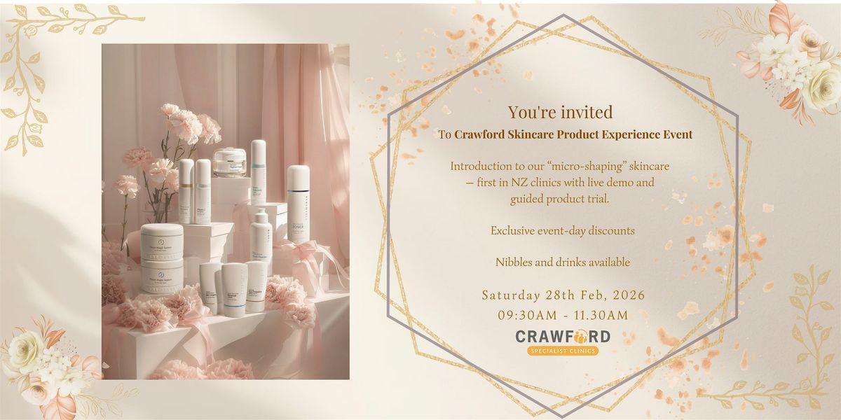 We’re thrilled to invite you to the Crawford Skincare Product Experience Event — an exclusive showcase of our new medical-grade topical “micro-shaping” skincare range, the first of its kind in New Zealand clinics.