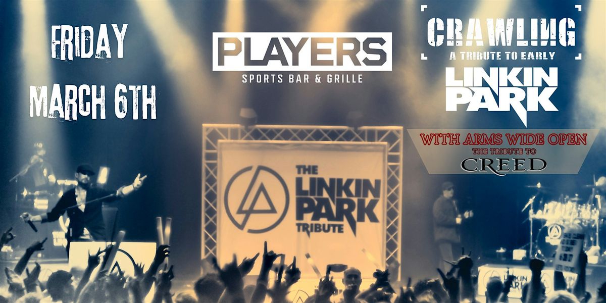 Players Sports Bar & Grille presents CRAWLING: A Tribute to Early Linkin Park with opener With Arms Wide Open (Tribute to Creed) for the first show of a tribute series. Doors open @ 7pm : Show starts @ 8pm