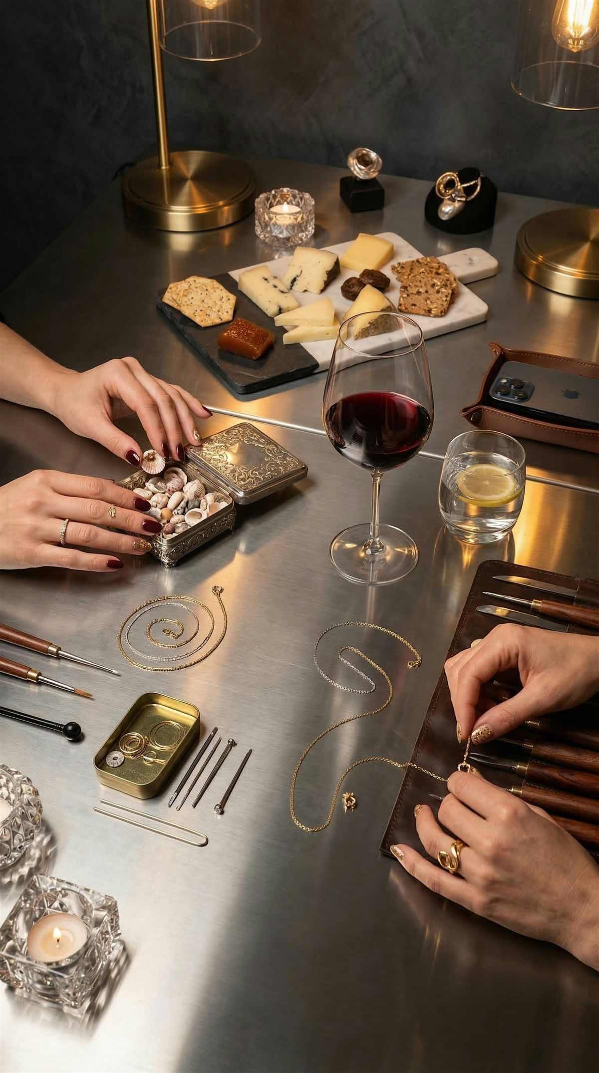 Crearás tus joyas desde cero con arcilla de bronce. Un material que se modela con facilidad y que al entrar en contacto con el fuego se convierte en metal puro. Podreis crear un conjunto de pendientes y colgante y llevároslo en el momento. Mientras disfrutaréis de vino y picoteo. Todos los materiales están incluidos en la experiencia. Ven con ganas, creatividad y buenas vibras. Te esperamos!