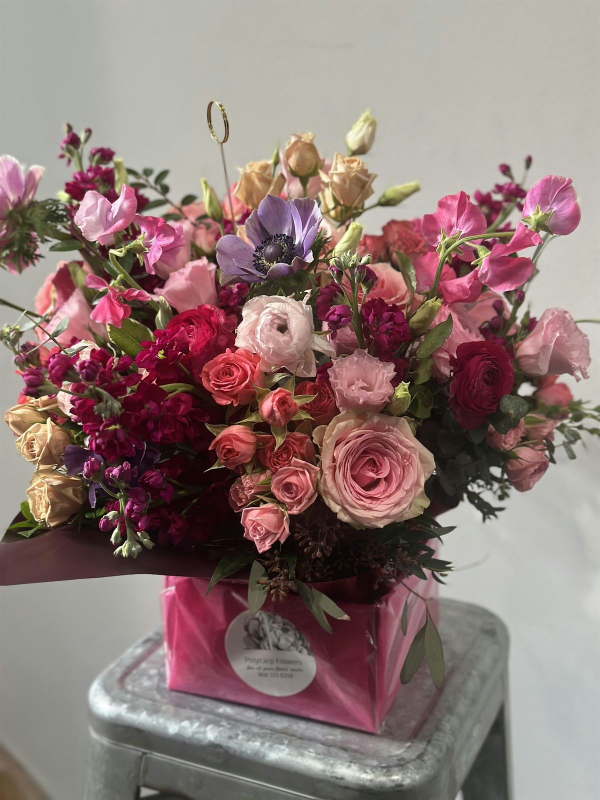 We will be designing two bouquets. One to gift to mom and one for yourself or that other special lady in your life. We will use gorgeous seasonal blooms. Garden roses, ranunculus and tulips are a few of our floral selections we will work with.