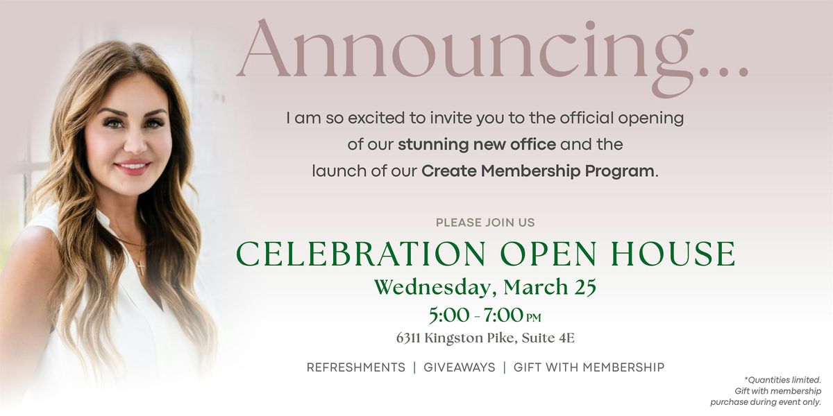 I am so excited to invite you to the official opening of our brand-new office and the exclusive launch of our Create Membership Program.