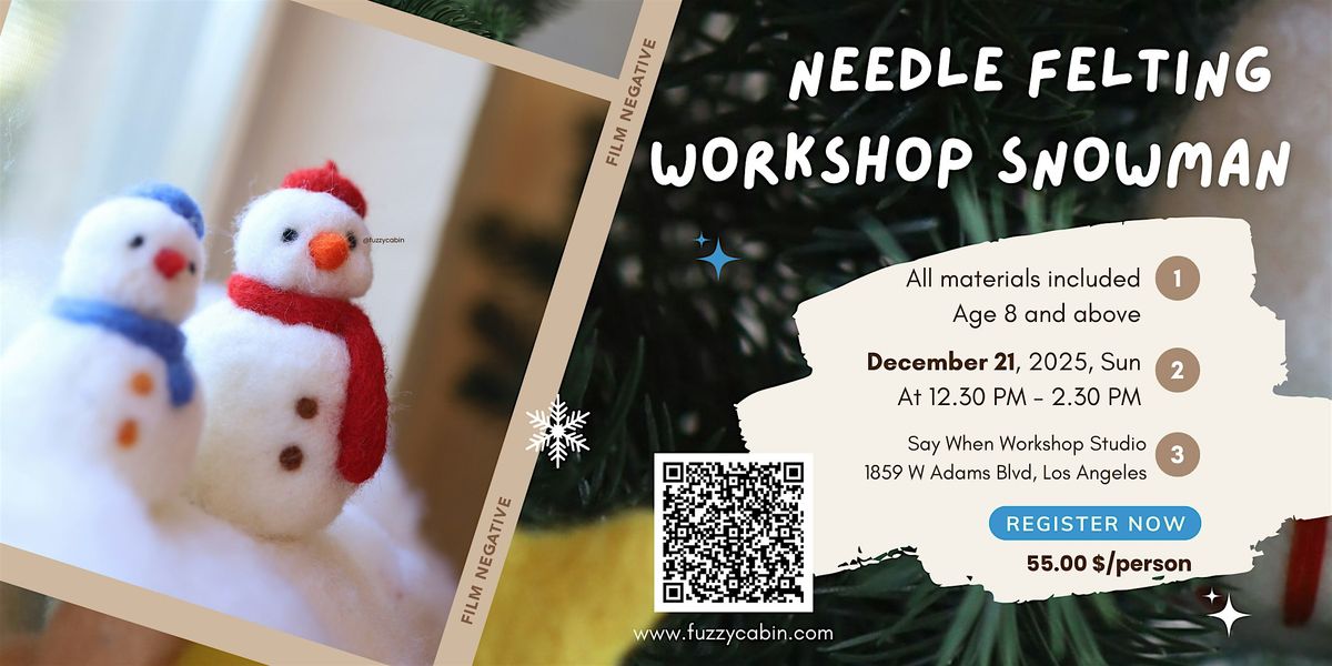 Embark on a creative journey with our Needle Felting Snowman Workshop! Immerse yourself in a delightful 2-hour session where you'll delve into the basics of needle felting to craft your very own charming snowman figure!