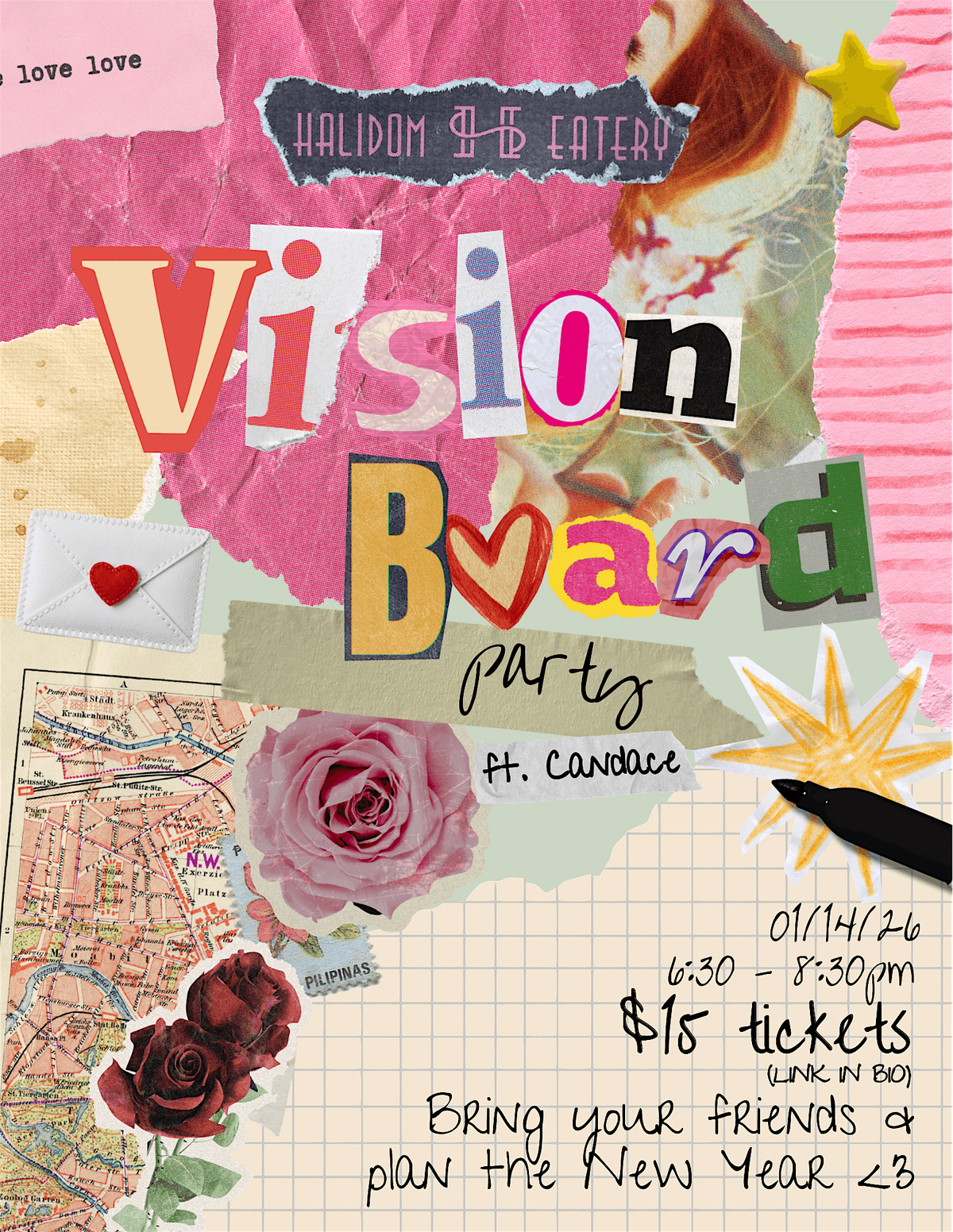 Network, Goal Setting, Fun, Food and Drinks at Halidom Eatery Vision Board Party Hosted by Influencer Seven Figure Spa ChickAbout this Event
