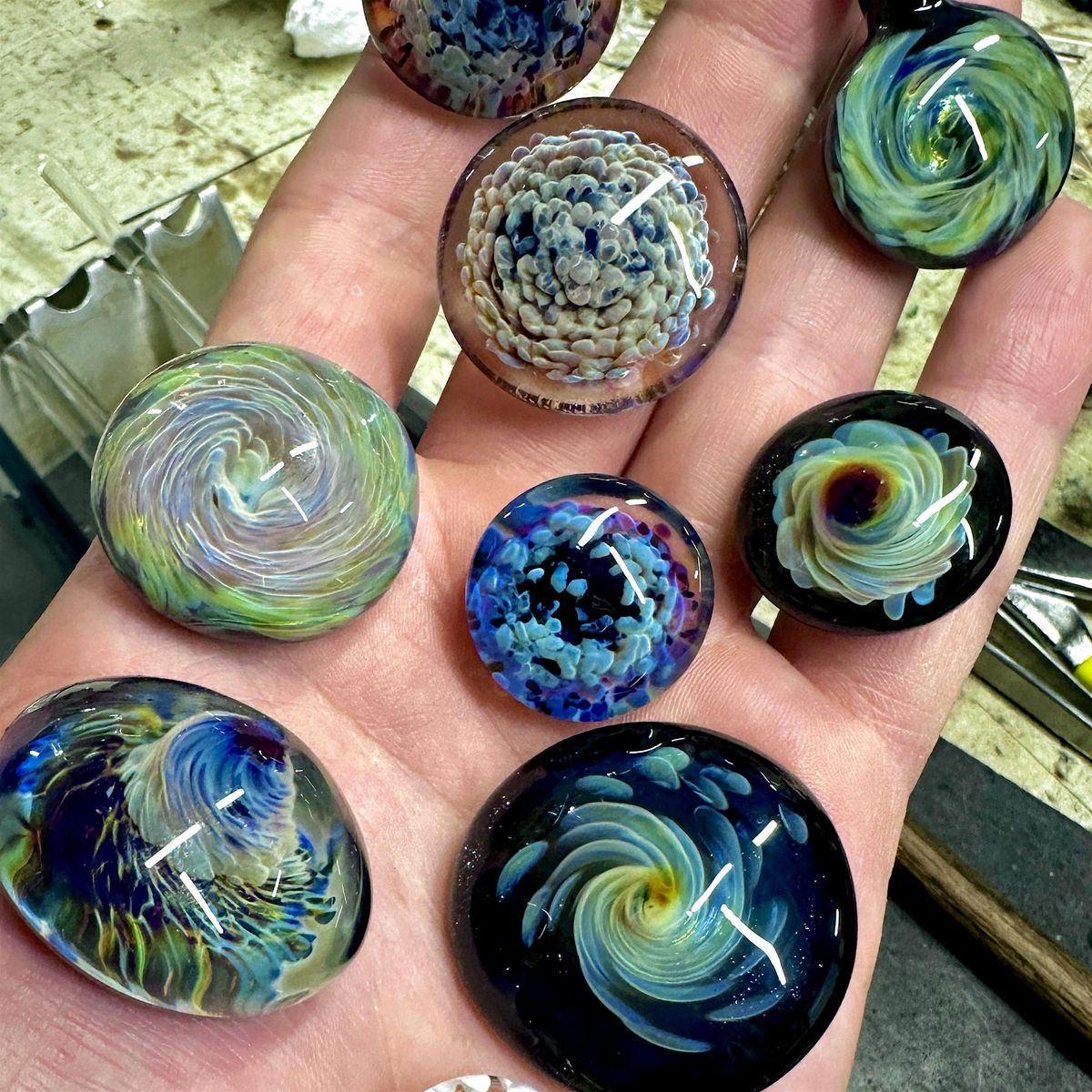 The class focuses on building core skills such as heating, gathering, rotating, and shaping glass. Students will also explore simple decorative techniques like applying frit to add color and texture. By the end of the session, participants will create a small finished piece while gaining a foundation that can lead to future projects like pendants, marbles, and small sculptural forms.