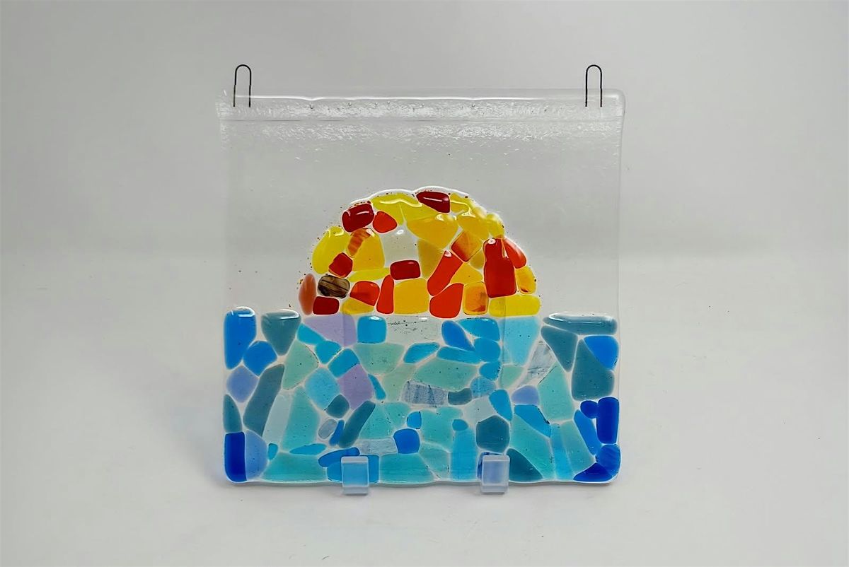 In this 2 hour class, our artist instructors guide you thru the design process, the glass prep, of cutting, nipping, edging, layout, proper portions, and even in this info, allow you to create, a hanging piece, a flat composition, coasters, plant stakes, etc. ..You decide in-studio which one you want to create..and we help you get to the end of your introductory fusing project.