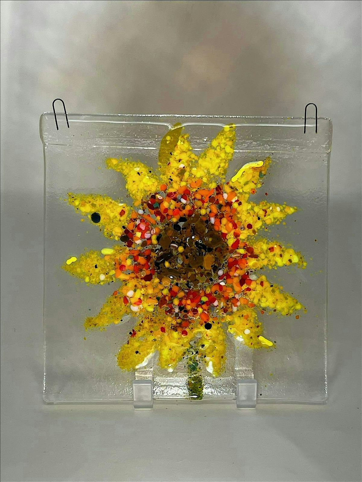 In this 2 hour class, our artist instructors guide you thru the design process, the glass prep, of cutting, nipping, edging, layout, proper portions, and even in this info, allow you to create, a hanging piece, a flat composition, coasters, plant stakes, etc. ..You decide in-studio which one you want to create..and we help you get to the end of your introductory fusing project.