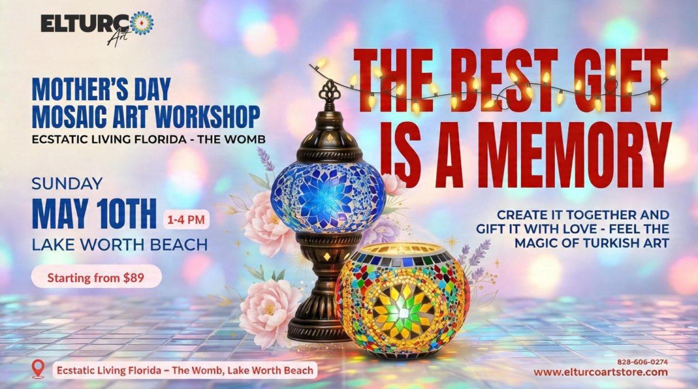 This experience is led by Irem Rama, founder of ElTurcoArt — a talented international mosaic artist and instructor who has been teaching this beautiful Turkish-inspired art experience in multiple locations and has recently returned to South Florida.