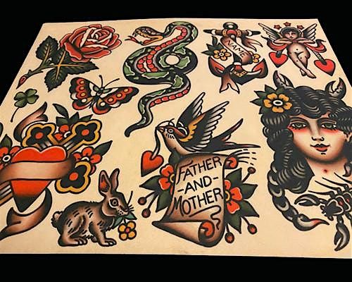 create your own Traditional Tattoo Flash sheet, and $100 flash tattoo sale