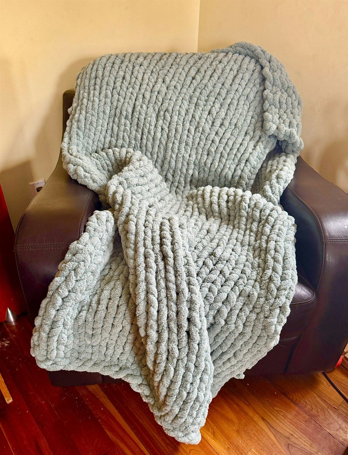• How to start, build, and finish a chunky blanket using arm and hand techniques