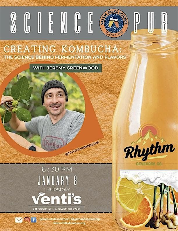 Join Jeremy Greenwood to learn about the secrets of creating kombucha. This drink continues to increase in popularity and has a wide variety of flavors available. The talk will highlight how Jeremy selects the right ingredients for his products and the process he uses to make his drinks right here in Salem.