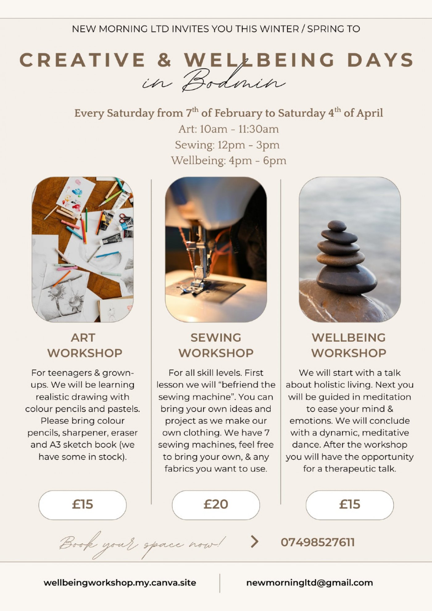 4pm - 6pm: Wellbeing workshop (£15)