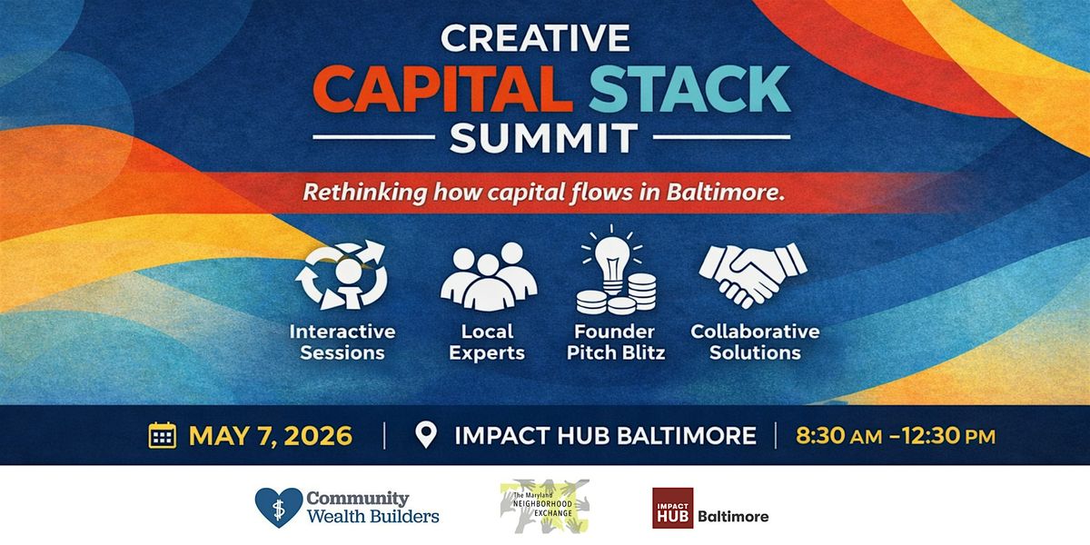 Co-hosted by Maryland Neighborhood Exchange and Impact Hub Baltimore, this is not your typical panel. The Creative Capital Stack Summit creates space for real-time strategy, hands-on collaboration, and bold ideas that move beyond silos—exploring how public, private, and community-driven capital can work together to better serve Baltimore’s business community.