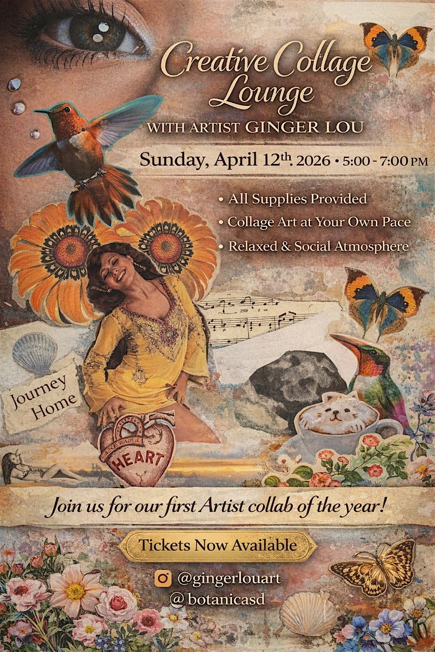 For this special event, Botanica Art & Cocktails transforms into an open creative lounge, where guests are invited to explore collage and mixed-media art in a relaxed, social atmosphere.