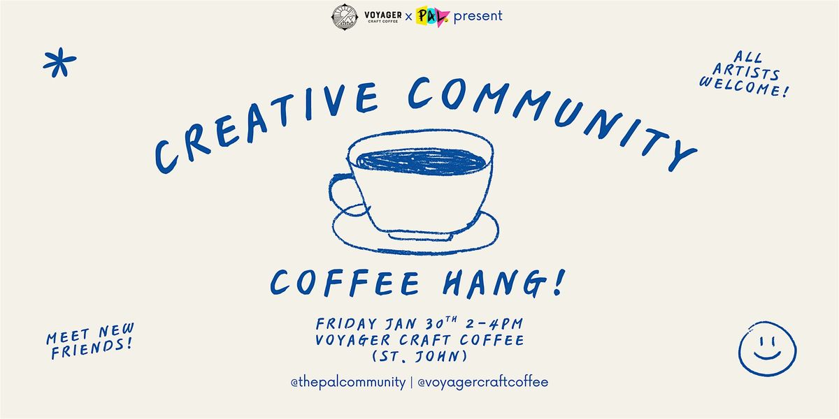 Come hang out with us at Voyager Craft Coffee (St. John) January 30th from 2-4pm for our monthly creative meetup to hang with other artists and make meaningful connections.