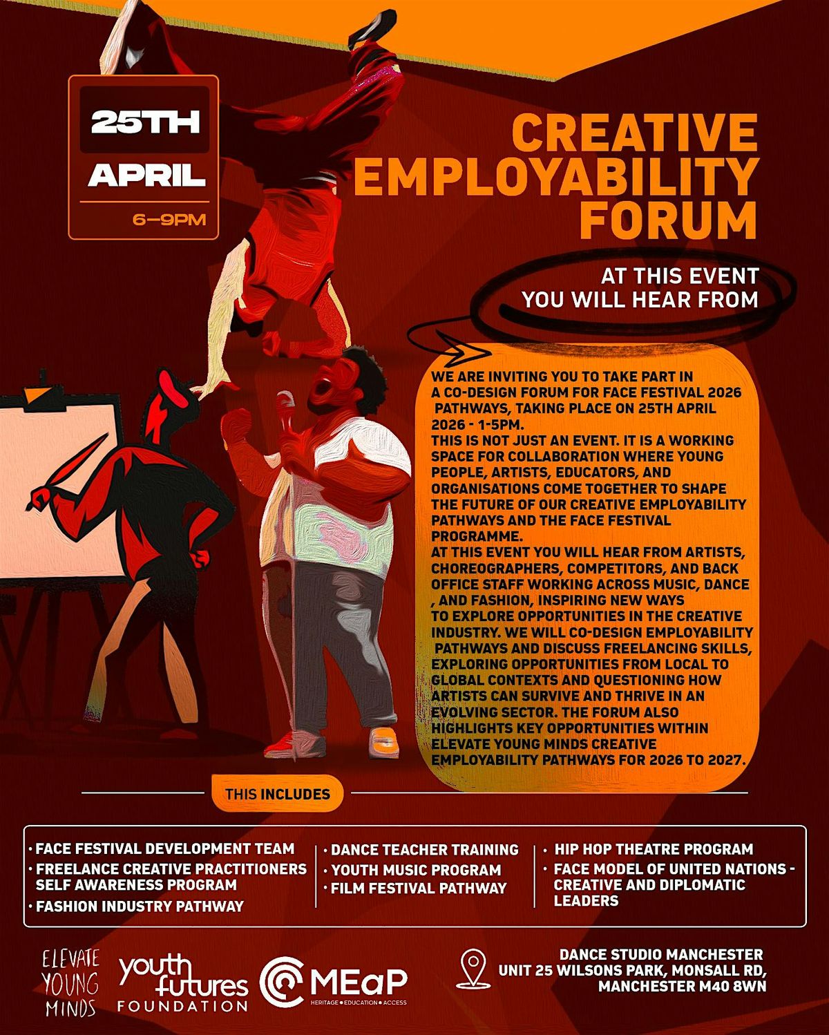 At Elevate Young Minds, we believe that the most impactful opportunities are built with communities, not just for them. This forum creates space to co-design creative employability pathways that respond to real needs, shape the structure and content of Face Festival 2026, share lived experiences from artists, freelancers, and past participants, and build connections between young people, industry, and support organisations. Together, we will explore how creative careers can be more accessible, sustainable, and inclusive.