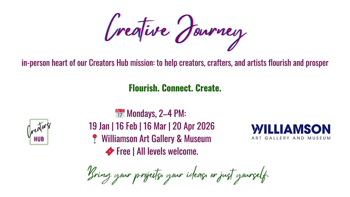 What is Creative Journey? Creative Journey is the in-person heart of our Creators Hub mission: to help creators, crafters, and artists flourish and prosper. Each session blends: