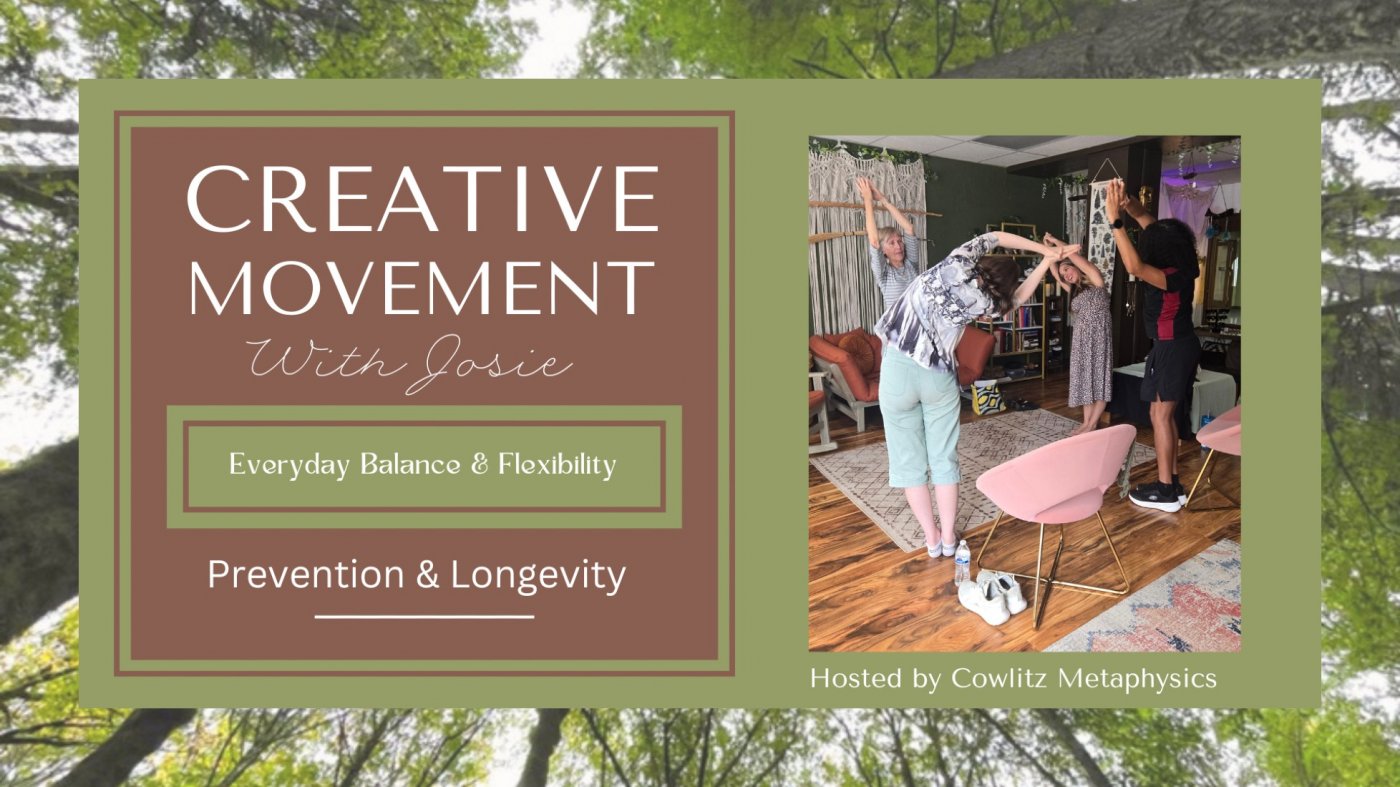 Creative Movement is a gentle, accessible somatic movement class designed to support stress reduction, flexibility, balance, and long term vitality. This class invites you to reconnect with your body in a way that feels safe, intuitive, and supportive, meeting you exactly where you are.