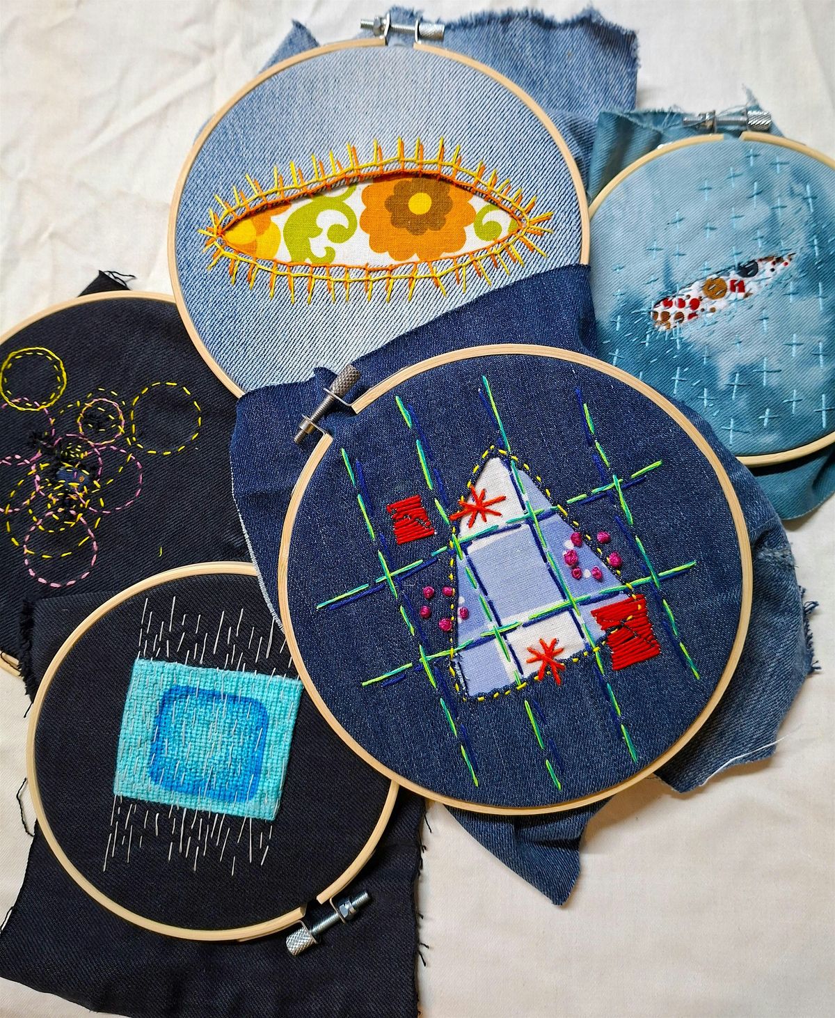 I will take you through different stitches and techniques to mend your own clothing, using vintage materials and embroidery techniques.