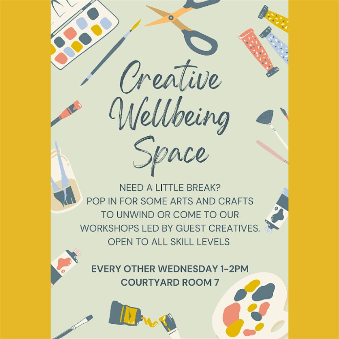 Our Creative Wellbeing Space and Workshops are each held every other Wednesday from 1-2pm in Courtyard Room 7.