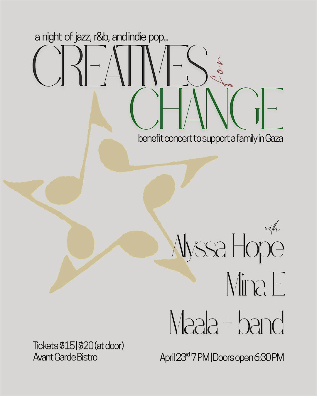 Amani Al Tawil is a Gaza-based English teacher who has lost her job due to the genocide. She is currently struggling with accomodations all while helping out her sister who is suffering from cancer. This concert is an initiative to raise both funds for Amani and her family. We hope to spread awareness and create community, all doing what we love most.