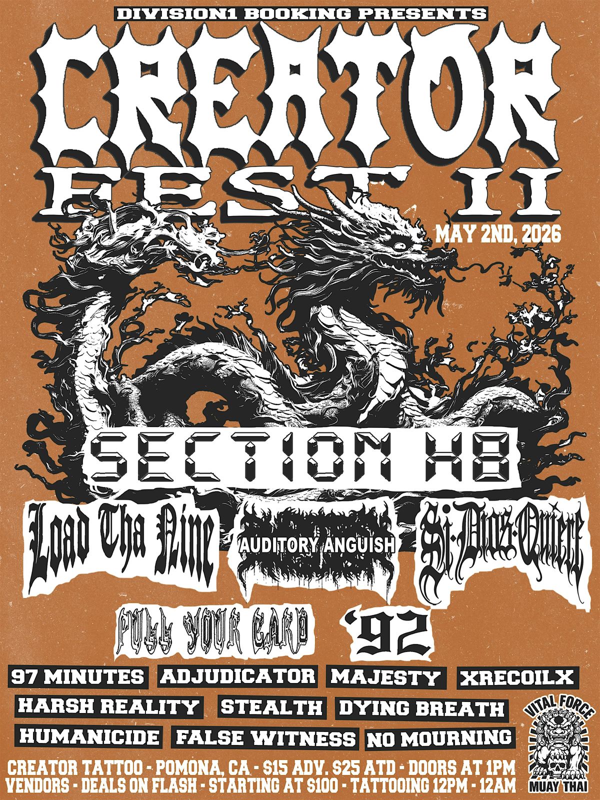 May 2nd at Creator Tattoo. Section H8, Load Tha Nine, Auditory Anguish and more.About this Event