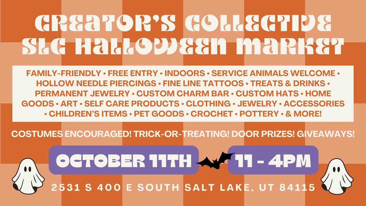 COME AND SHOP OUR SLC HALLOWEEN MARKET! Our event is featuring local small businesses, artists, makers, and curators. We are your one-stop-shop for anything and everything! Costumes are encouraged and there will be trick-or-treating for the little ones!