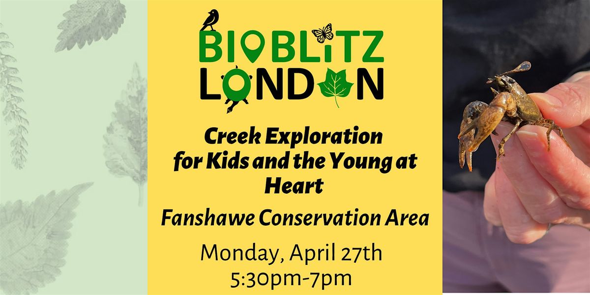 Join environmental educators for a fun, hands‑on Bioblitz in Fanshawe Park Conservation Area. Using iNaturalist, we will learn how to identify aquatic plant and animal species, all while enjoying the fresh air, sights, and sounds of the outdoors. Nets, buckets and observations jars will be available.