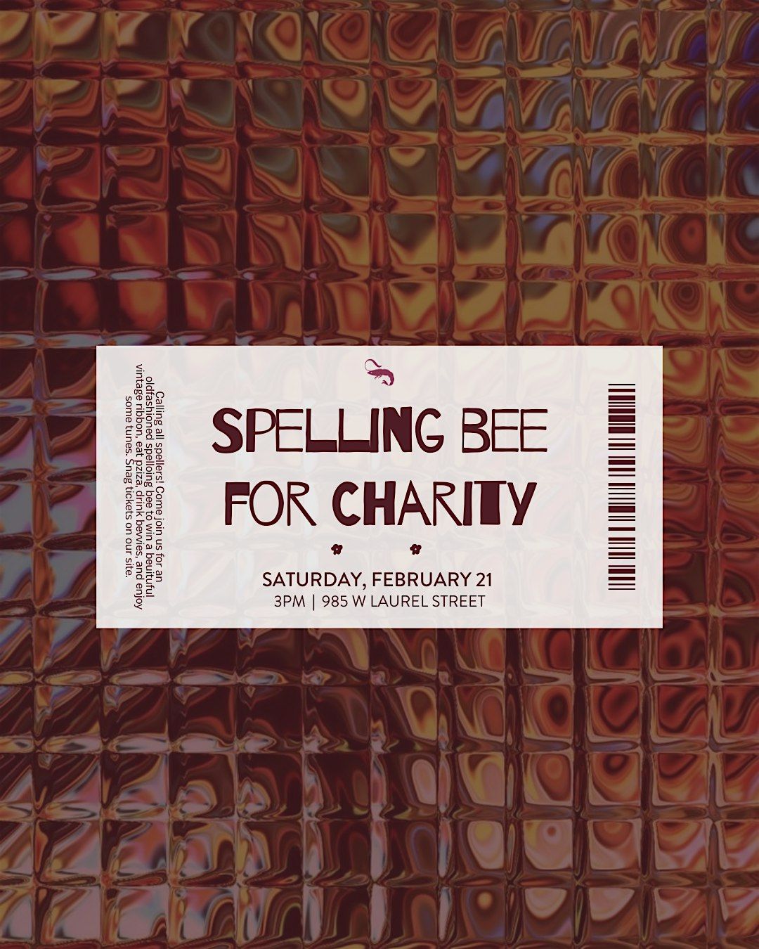 Enter our an old fashioned spelling bee for the chance to win a handmade vintage ribbon, raise money for a good cause, enjoy beverages, pizza, and community.