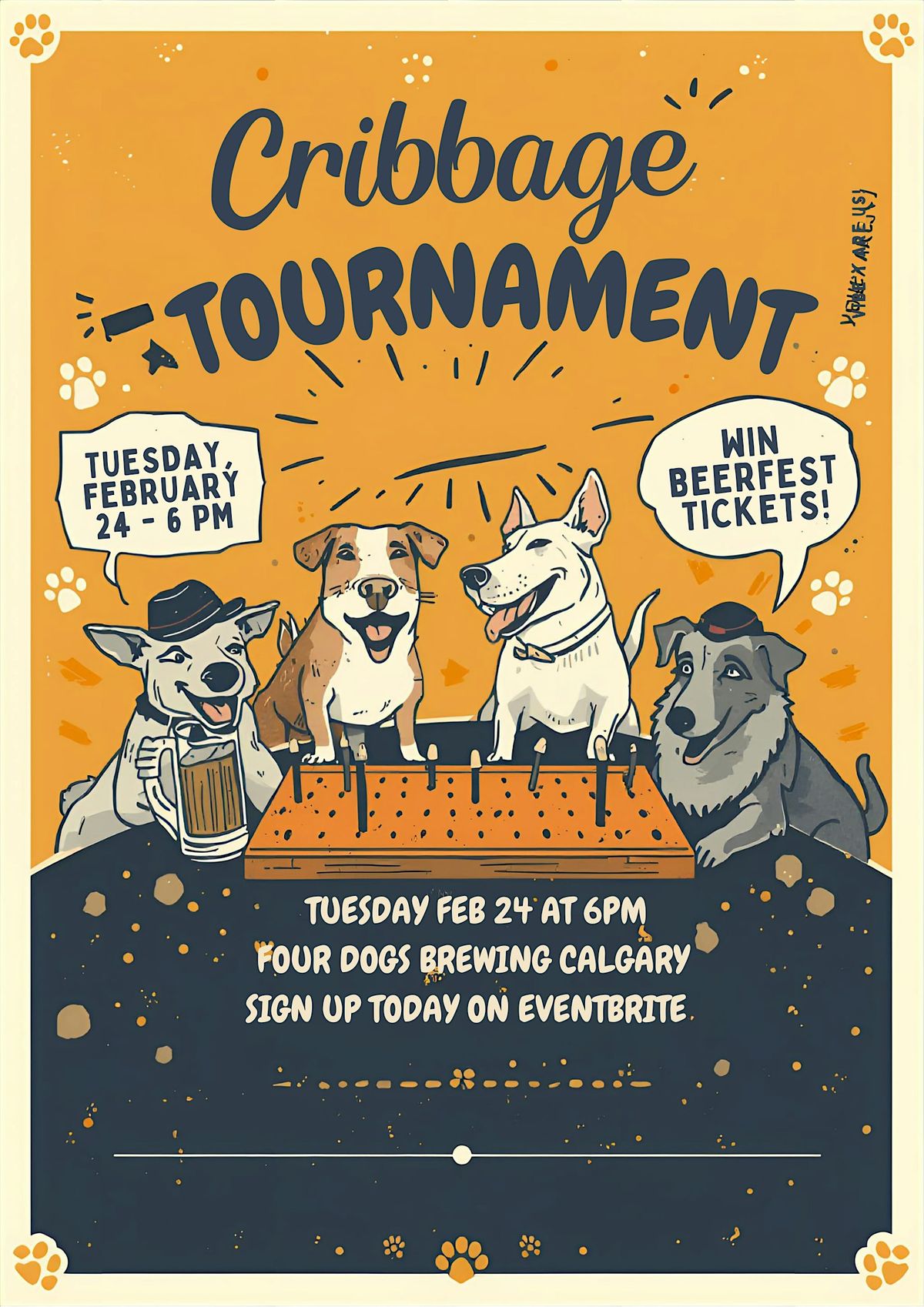 Ready for some friendly competition? Join us in person at Four Dogs Brewing for a fun-filled cribbage tournament! Whether you're a seasoned pro or just looking to learn, come enjoy great brews and even better company. Don't miss out on the laughs, strategy, and good vibes. Grab your friends and let's shuffle those cards! Win a Pair of BEERFEST tickets
