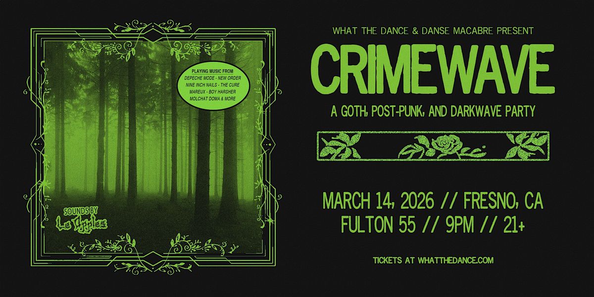 Fresno! Dive into the shadows and lose yourself to CRIMEWAVE - a night of your favorite gothwave, darkwave, new wave, post-punk, and industrial music 🥀
