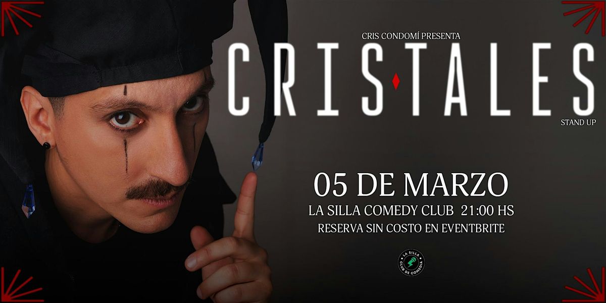 Cristales es un viaje ácido, absurdo y oscuro por la fragilidad del cuerpo, de la mente y de los tiempos que corren. En este show Cris Condomdí se ríe de su propia decadencia, de la depresión, y de la muerte de la juventud.