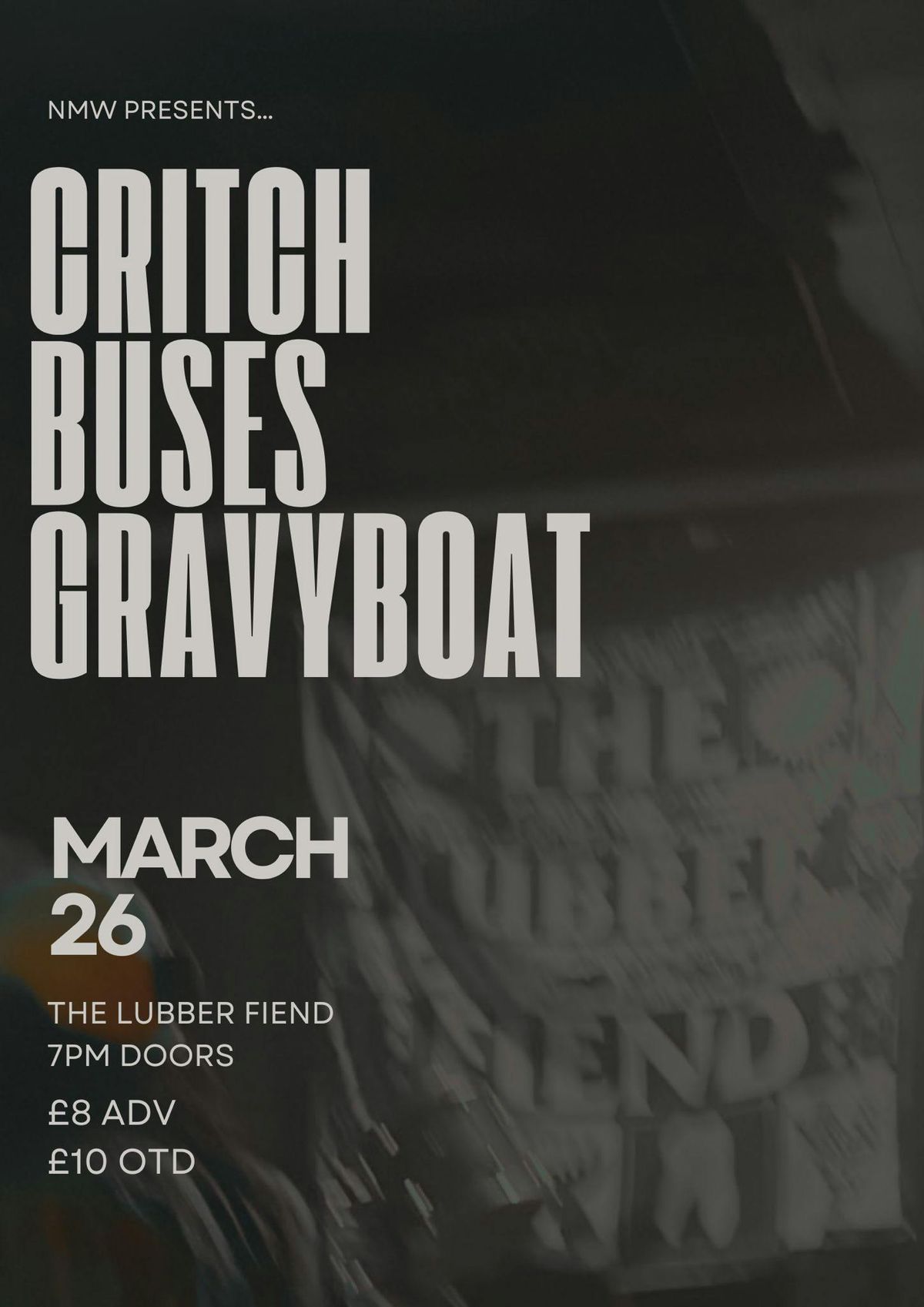 New Music Wednesdays are proud to present a showcase of the best local talents at the Lubber Fiend!Alternative, punk and indie rock fusion coming straight out of Sunderland, CRITCH bring a presence to the stage like no other. Releasing their debut EP No Ball Games November 2025, they’re ready for a bigger and better 2026… Come experience the energy that these local boys bring.