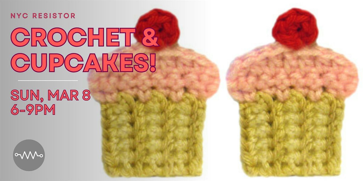 Come to Resistor to learn the basics of crochet! In this class you will learn to crochet a tiny (non-edible) cupcake applique made of yarn. The pattern will teach you the basics of crochet, namely how to make chain stitches and single stitches. It will be taught by Cat Paris, an NYC based educator and crochet aficionado. All materials will be provided! There will also be ACTUAL EDIBLE CUPCAKES that you can snack on while you work on your craft!