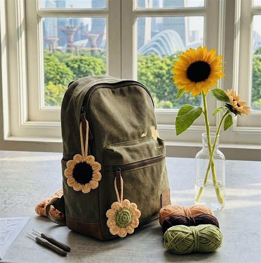 Crochet Beautiful Sunflower bag tag - Intermediate level