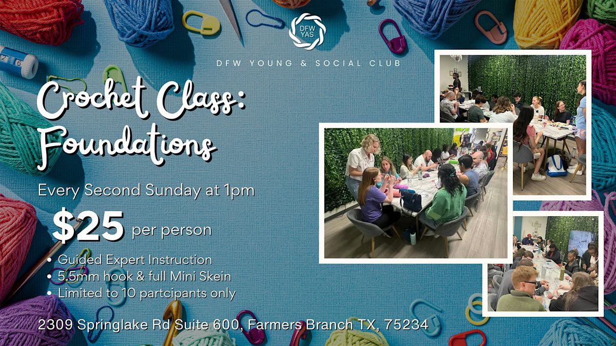 Curious about crochet or looking to brush up on the basics? Our Crochet Foundations class is a relaxed, beginner friendly space to learn the essentials and enjoy crafting together. We will cover how to hold a hook, make a slip knot, chain stitch, and practice simple stitches to help you get started.