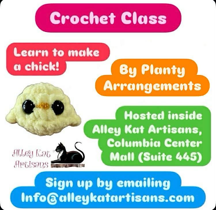 Beginner and experienced friendly crochet class small critter series. Price includes material. tools supplied for use of class.