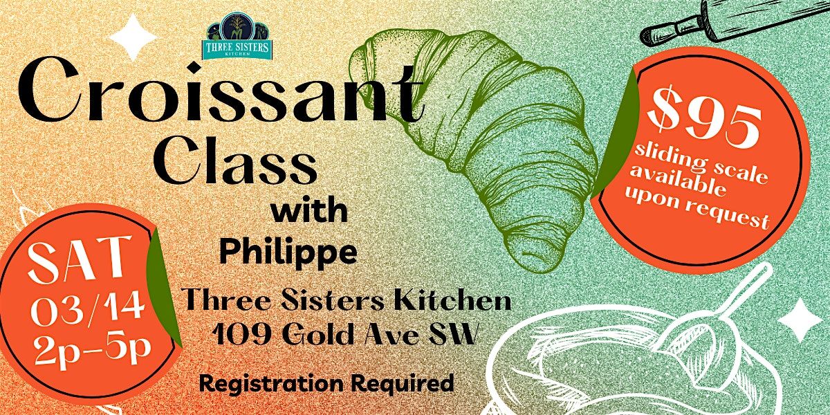 Join us for a fun-filled croissant baking class at Three Sisters Kitchen and learn the secrets to making flaky, buttery croissants from scratch! Tickets are $95, and sliding scale is available. Please reach out to [email protected] for inquiries.