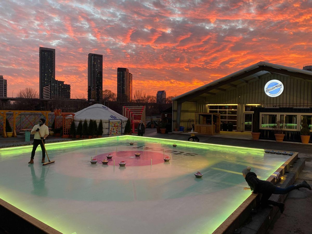 stackt is proud to announce the return of Crokicurl as part of this year's Holiday Hills winter festival. A blend of the Canadian classic game curling and crokinole, Crokicurl will be set up on a massive ice rink at stackt, and is a fully accessible game that your friends + fam can all enjoy.