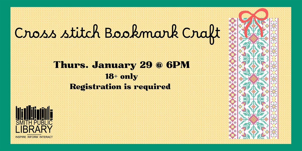 Come join us at Rita & Truett Smith Public Library for a fun workshop on the art of cross stitch and making a bookmark. All materials will be provided. 18+ Only.