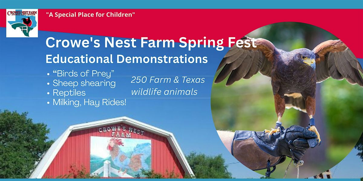 Welcome to Crowe's Nest Farm Spring Fest '26! Join us for a day filled with fun farm activities, delicious food and live music at in Manor! Bring your friends and family for a memorable day out in the sun. Mark your calendars now!
