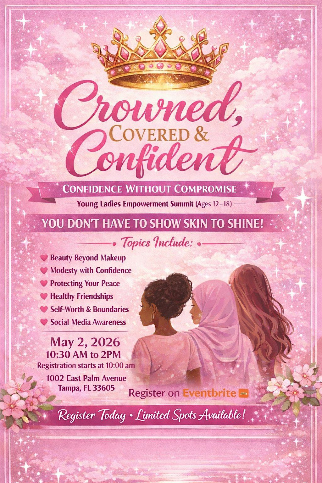 Crowned, Covered & Confident is a transformational empowerment summit created to help young ladies ages 12–18 discover their worth, protect their identity, and walk boldly in confidence without compromising who they are.