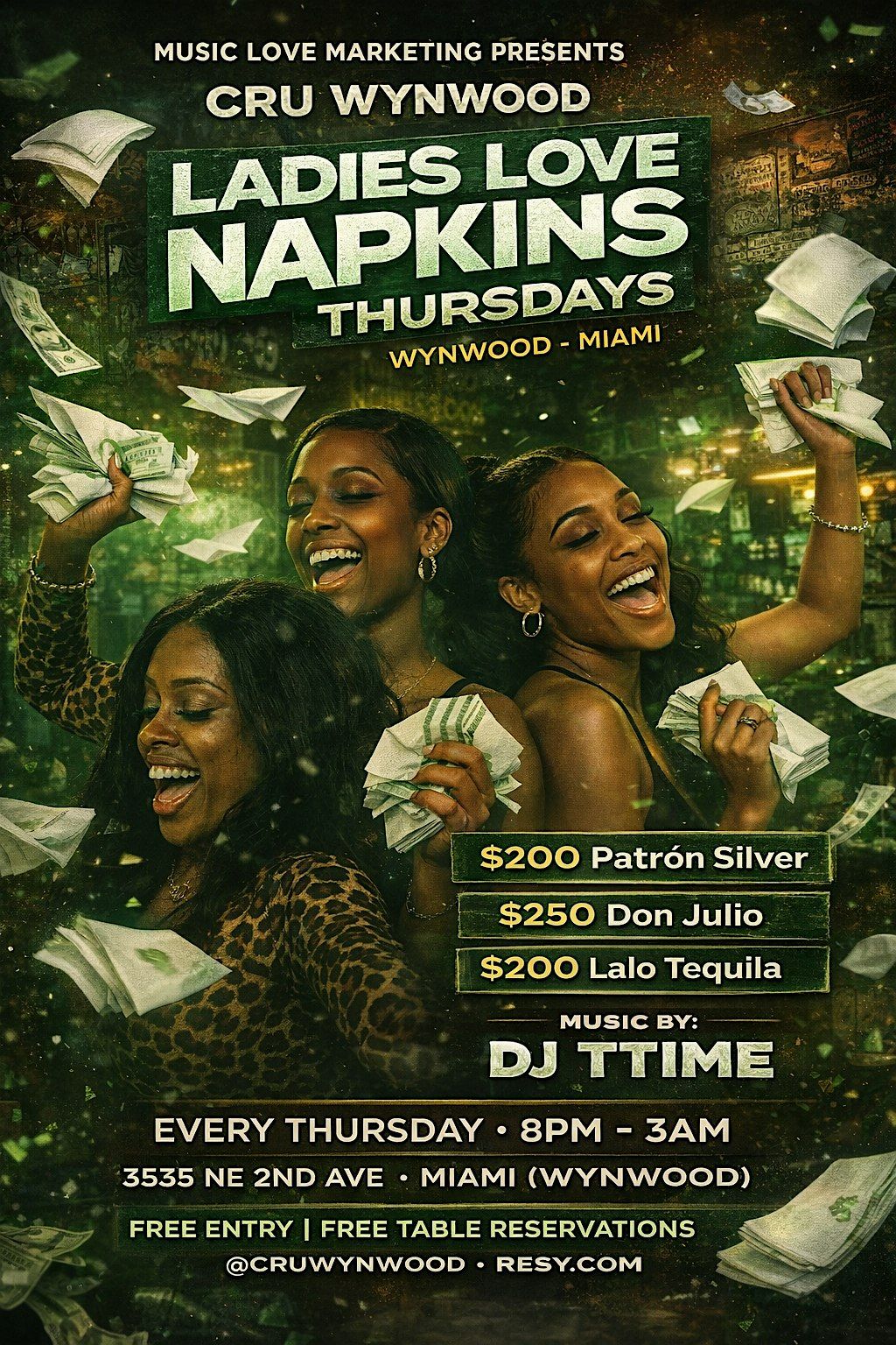#CruWynwood #LadiesLoveNapkins #MiamiNightlife #WynwoodNights #ThursdayVibes #DJTTime #MiamiEvents #GirlsNightOut #OutsideSeason