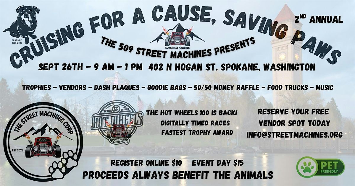 Welcome to Cruising for a Cause, Saving Paws! Join us at 402 N Hogan St on Sept 26, 2026 at 9:00 AM for a day filled with street machines, fun and furry friends. 🐾 Let's come together to support our four-legged companions. Don't miss out on this paw-some opportunity to make a difference! See you there!