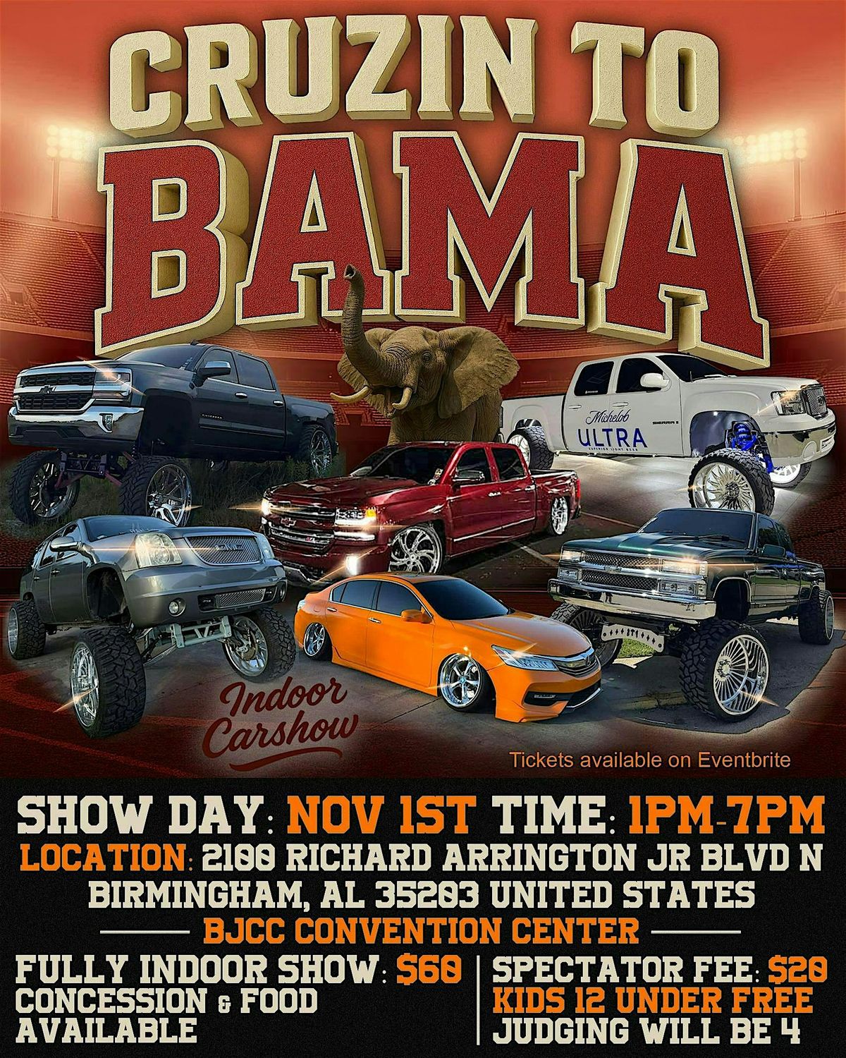 CRUZIN TO BAMA is revving up at the Birmingham Jefferson Convention Complex! Get ready for a day filled with classic cars , trucks, and good vibes. Whether you're a truck enthusiast or just looking for a fun time, this event is perfect for everyone. Join us for a day of cruising, checking out cool rides, and enjoying the company of fellow Truck lovers. Don't miss out on this exciting event - mark your calendars now!!!!