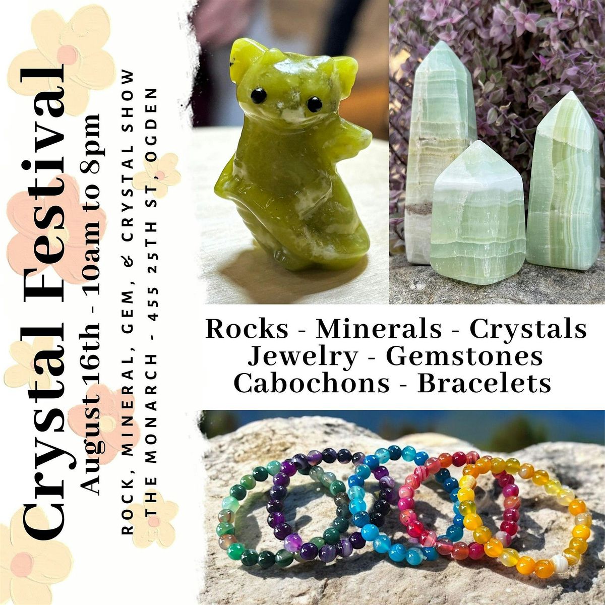 Join us for a full day of discovery, creativity, and community at the Crystal Festival – A Rock, Mineral, Gem, & Crystal Show plus Oddities Market, happening Sunday, August 16th, from 10am to 8pm at The Monarch on 25th.